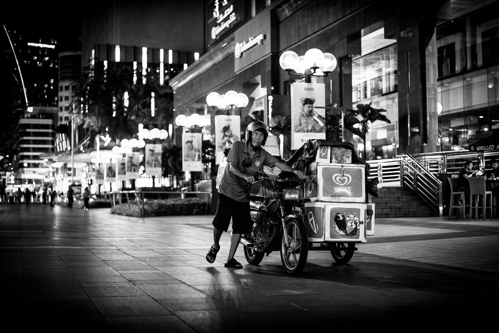 Because ice-cream hawkers are mobile, improvised refrigeration is the key to their trade. In the beginning, hawkers used a mixture of crushed ice and salt to create a sub-zero environment to prevent their ice-cream from melting. In the 1980s, hawkers switched to dry ice. Trishaws also gave way to motorcycles with sidecars over the decades.